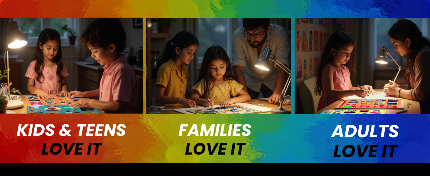 Most of our games are recommended for ages 12–14 and above. They’re designed to be fun for teens, adults, and families alike!