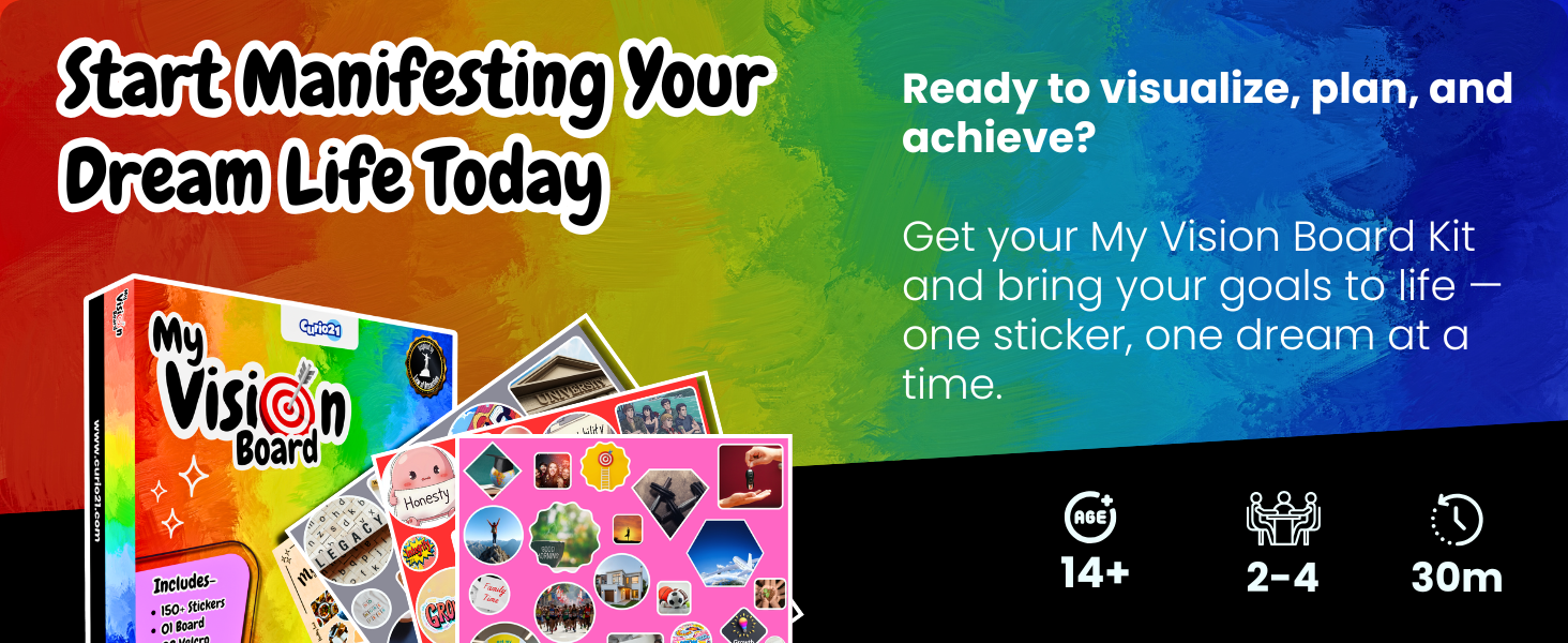 Turn your dreams into reality with the Curio21 My Vision Board, a beautifully designed DIY vision board kit that helps you set clear intentions, visualize your goals, and stay motivated every single day. Whether you’re a teen mapping out your future, an adult chasing bold ambitions, or a child learning to dream big, this goal setting vision board offers a fun and inspiring way to focus on what truly matters.