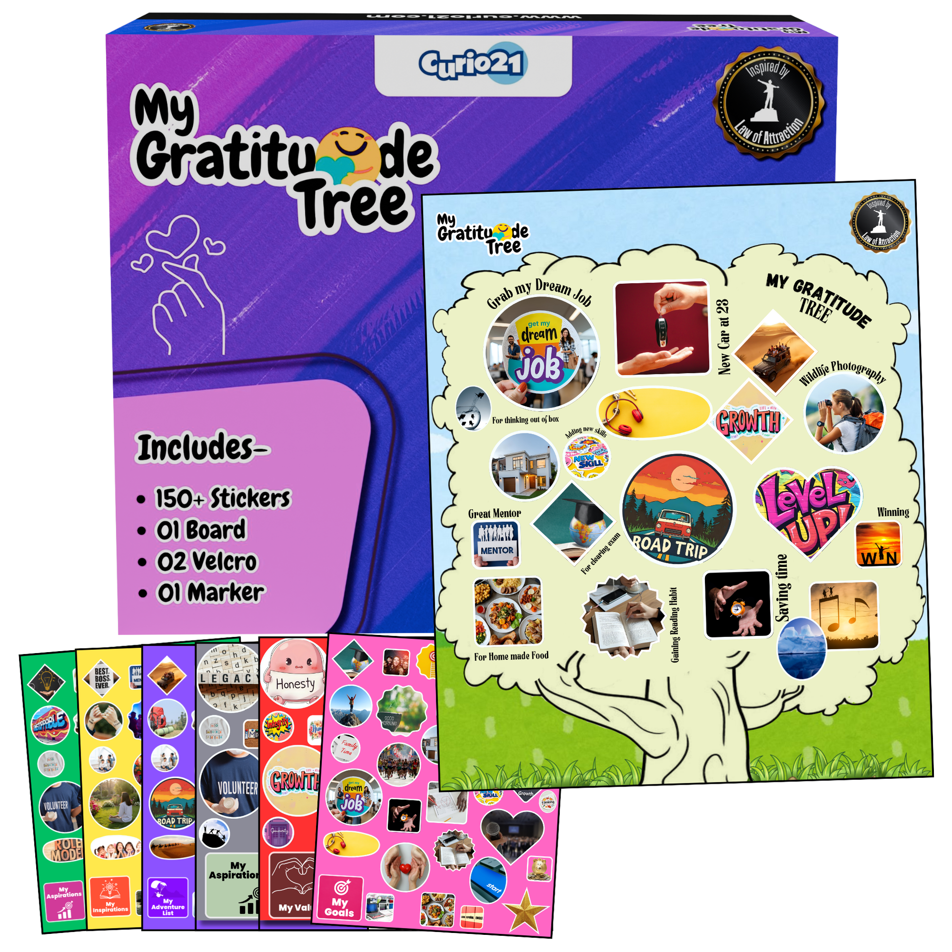 Turn gratitude into a game you’ll love! The Curio21 My Gratitude Tree inspires daily reflection and helps families, friends, and individuals share what they’re thankful for in a creative, visual way. By adding colorful stickers to your tree, you watch your thankfulness grow day by day — strengthening emotional connections, improving mood, and encouraging meaningful conversations.
