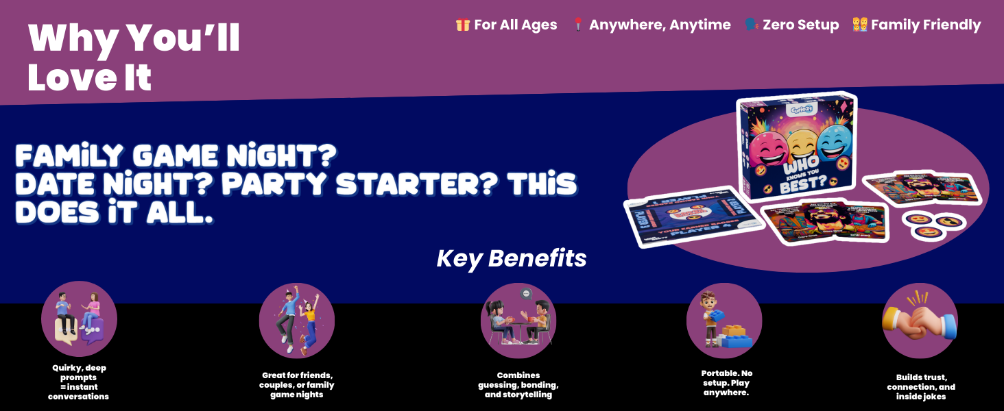 With easy-to-learn rules and endless replayability, Curio21 Who Knows You Best? is suitable for kids, teens, and adults alike. No two rounds are ever the same, so you can play it again and again without it ever getting old. It’s the perfect board game gift for anyone who loves fun challenges, witty banter, and genuine connection.
